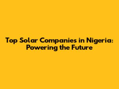 Top Solar Companies In Nigeria: Powering The Future