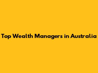 Top Wealth Managers In Australia