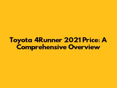 Toyota 4Runner 2021 Price: A Comprehensive Overview