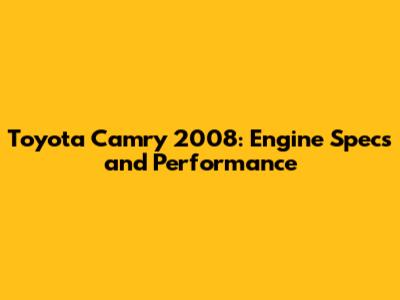 Toyota Camry 2008: Engine Specs And Performance