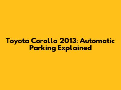 Hey guys, let's dive into the Toyota Corolla 2013 and its awesome automatic parking feature. If you're cruising around in a 2013 Corolla, you might have this tech and not even know how cool it is! This guide will break down everything you need to know about automatic parking in your Corolla. We'll explore how it works, what situations it's best for, and some things to keep in mind. Get ready to level up your parking game! This article will thoroughly explain every aspect of automatic parking for your Toyota Corolla 2013, ensuring you understand its functionality and how to best utilize this innovative feature. From the basic mechanics to tips for optimal use, we'll cover it all.