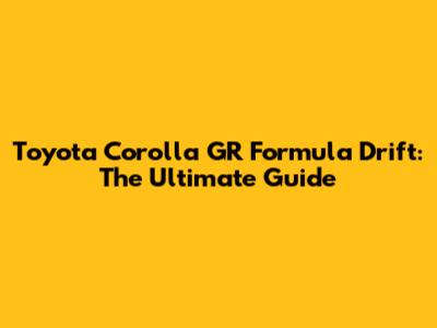 Toyota Corolla GR Formula Drift: The Ultimate Guide
