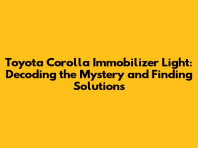 Toyota Corolla Immobilizer Light: What It Means & Fixes