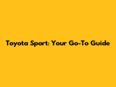 Toyota Sport: Your Go-To Guide