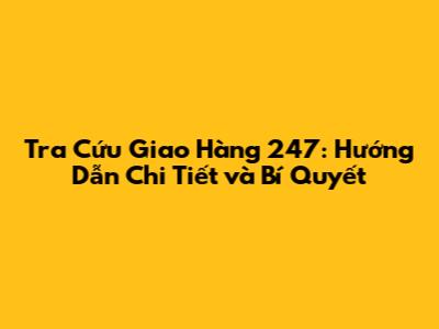 Tra Cứu Giao Hàng 247: Hướng Dẫn Chi Tiết Và Bí Quyết