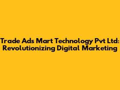 In today's fast-paced digital world, businesses need innovative marketing solutions to stand out from the competition. Trade Ads Mart Technology Pvt Ltd is at the forefront of this revolution, offering cutting-edge strategies and technologies to help companies achieve their marketing goals. Let's dive into how this company is transforming the digital marketing landscape and why it's becoming a game-changer for businesses of all sizes.