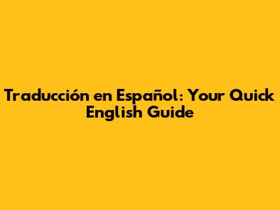 Traducción En Español: Your Quick English Guide