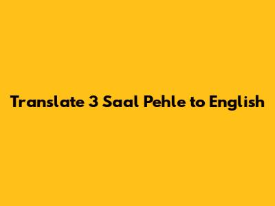Translate '3 Saal Pehle' To English