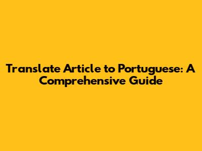 Translate Article To Portuguese: A Comprehensive Guide