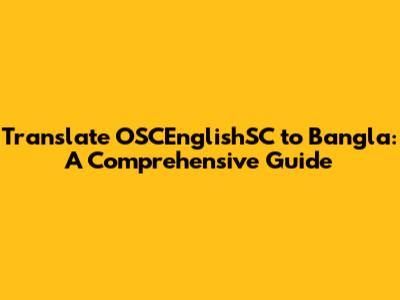 Translate OSCEnglishSC To Bangla: A Comprehensive Guide
