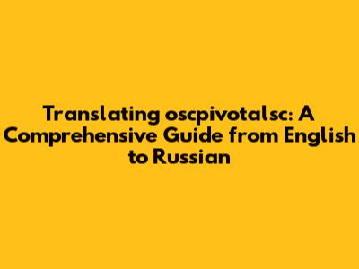 Hey guys! Today, we're diving deep into the world of translation, specifically focusing on how to translate "oscpivotalsc" from English to Russian. This isn't just about swapping words; it’s about understanding the nuances, context, and potential meanings behind the term to ensure an accurate and useful translation. Whether you're a student, a professional, or just someone curious about languages, this guide is designed to help you navigate the complexities of translation. So, grab your favorite beverage, and let’s get started!