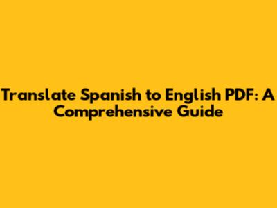 Translate Spanish To English PDF: A Comprehensive Guide