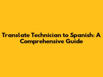 Translate Technician To Spanish: A Comprehensive Guide