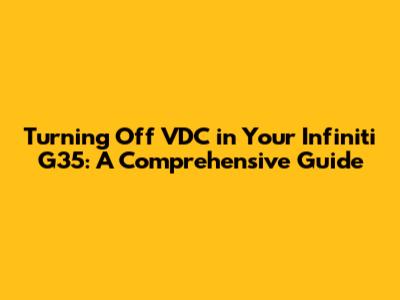 Turn Off VDC Infiniti G35: A Simple Guide