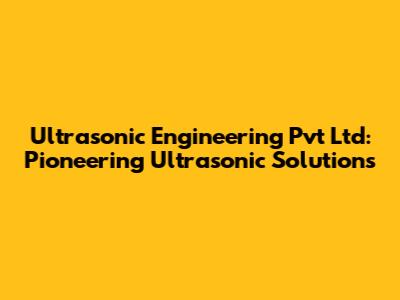 Ultrasonic Engineering Pvt Ltd: Pioneering Ultrasonic Solutions