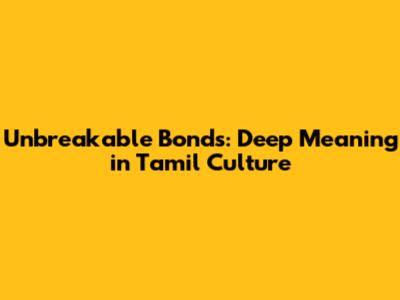 Unbreakable Bonds: Deep Meaning In Tamil Culture