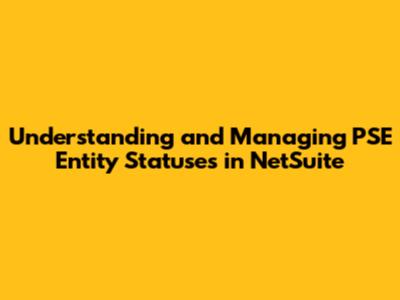 Understanding And Managing PSE Entity Statuses In NetSuite