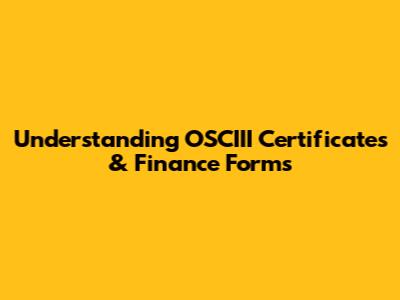 Understanding OSCIII Certificates & Finance Forms