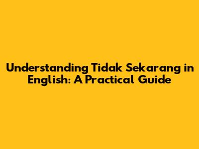 Understanding 'Tidak Sekarang' In English: A Practical Guide