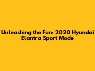 Unleashing The Fun: 2020 Hyundai Elantra Sport Mode