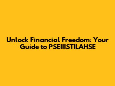 Unlock Financial Freedom: Your Guide To PSEIIISTILAHSE