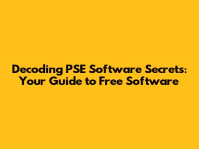Decoding PSE Software Secrets: Your Guide to Free Software