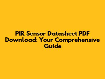 Hey there, tech enthusiasts! Ever found yourself scratching your head, wondering how to get the lowdown on a PIR sensor? Well, you're in the right place! We're diving deep into the world of PIR sensor datasheet PDF downloads. Think of it as your ultimate cheat sheet for all things Passive Infrared (PIR) sensors. We'll explore why these datasheets are so crucial, where to find them, and how to make the most of the information they provide. Whether you're a seasoned electronics guru or just starting out with your first project, understanding datasheets is key to success. Ready to unlock the secrets? Let's get started!