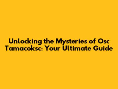 Unlock The Secrets Of Osc Tamacoksc