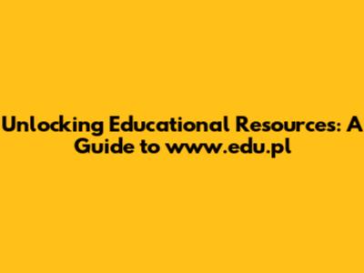 Unlocking Educational Resources: A Guide To Www.edu.pl