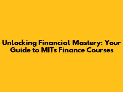 Unlocking Financial Mastery: Your Guide To MIT's Finance Courses