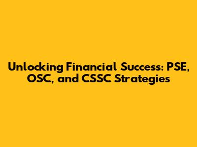 Unlocking Financial Success: PSE, OSC, And CSSC Strategies