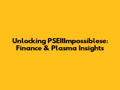 Unlocking PSEIIImpossiblese: Finance & Plasma Insights
