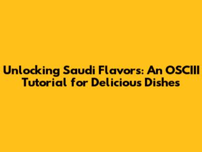 Unlocking Saudi Flavors: An OSCIII Tutorial For Delicious Dishes