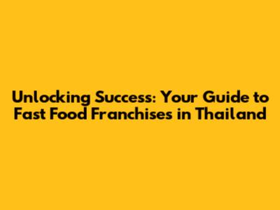 Unlocking Success: Your Guide To Fast Food Franchises In Thailand