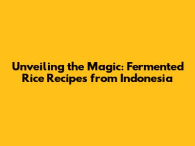 Unlocking The Flavors Of Indonesia: A Guide To Fermented Rice Recipes