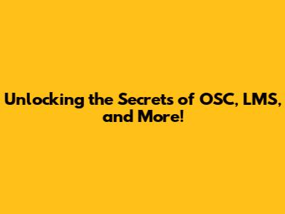 Unlocking The Secrets Of OSC, LMS, And More!
