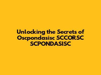 Unlocking The Secrets Of Oscpondasisc SCCORSC SCPONDASISC