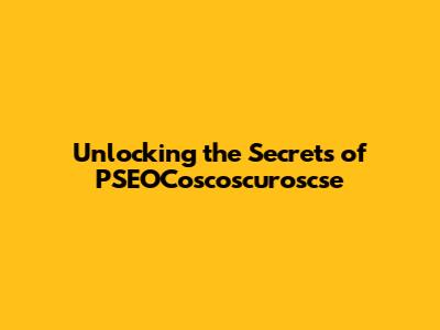 Unlocking The Secrets Of PSEOCoscoscuroscse