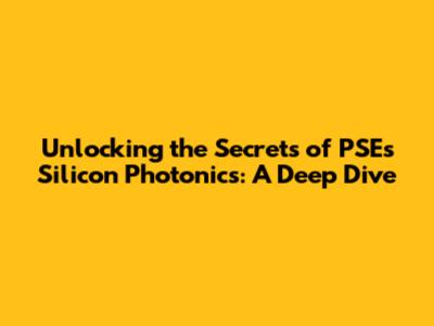 Unlocking The Secrets Of PSE's Silicon Photonics: A Deep Dive