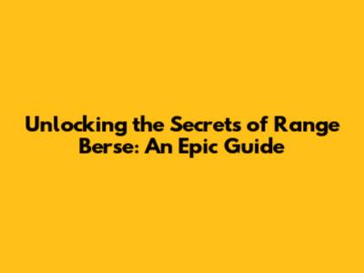 Unlocking The Secrets Of Range Berse