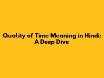 Unlocking The Secrets: Quality Of Time In Hindi