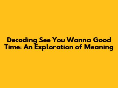 Unpacking The Meaning: 'See You Wanna Good Time' Explained