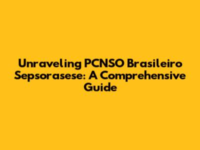 Unraveling PCNSO Brasileiro Sepsorasese: A Comprehensive Guide