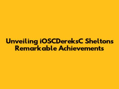 Unveiling IOSCDereksC Shelton's Remarkable Achievements