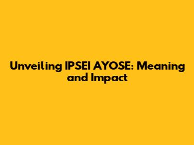 Unveiling IPSEI AYOSE: Meaning And Impact