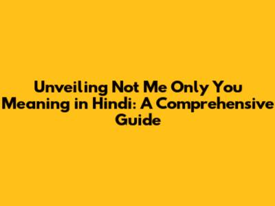 Unveiling 'Not Me Only You' Meaning In Hindi: A Comprehensive Guide