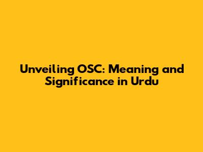 Unveiling OSC: Meaning And Significance In Urdu