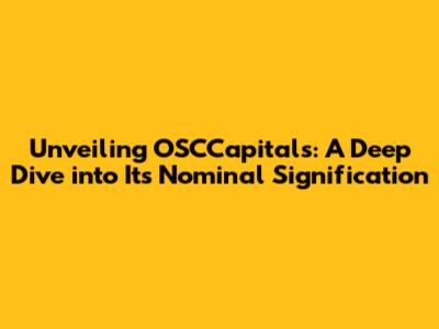 Unveiling OSCCapitals: A Deep Dive Into Its Nominal Signification
