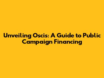 Unveiling Oscis: A Guide To Public Campaign Financing