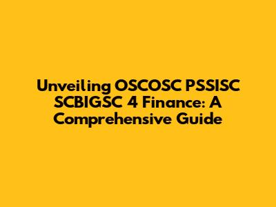 Unveiling OSCOSC PSSISC SCBIGSC 4 Finance: A Comprehensive Guide